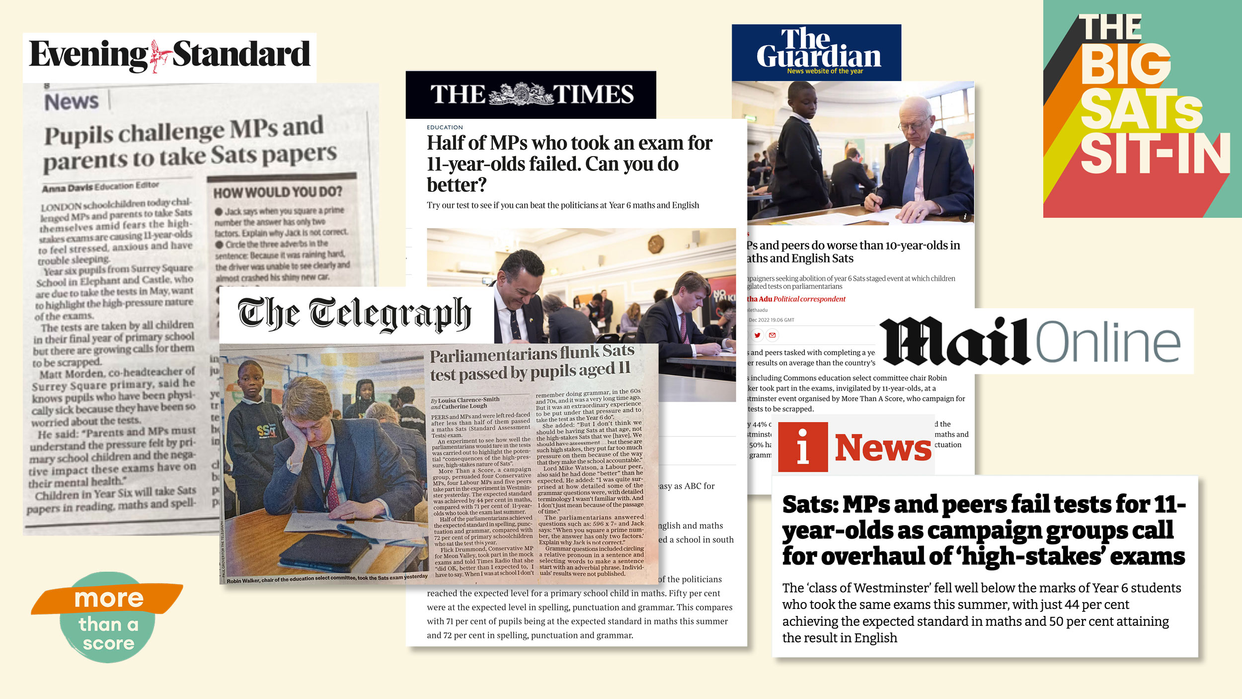 We won coverage in every national newspaper with our Big SATs Sit-In event, inviting MPs in Westminster and parents in schools all over the country to try their hand at mini-versions of formal tests taken by 10 and 11 year olds.